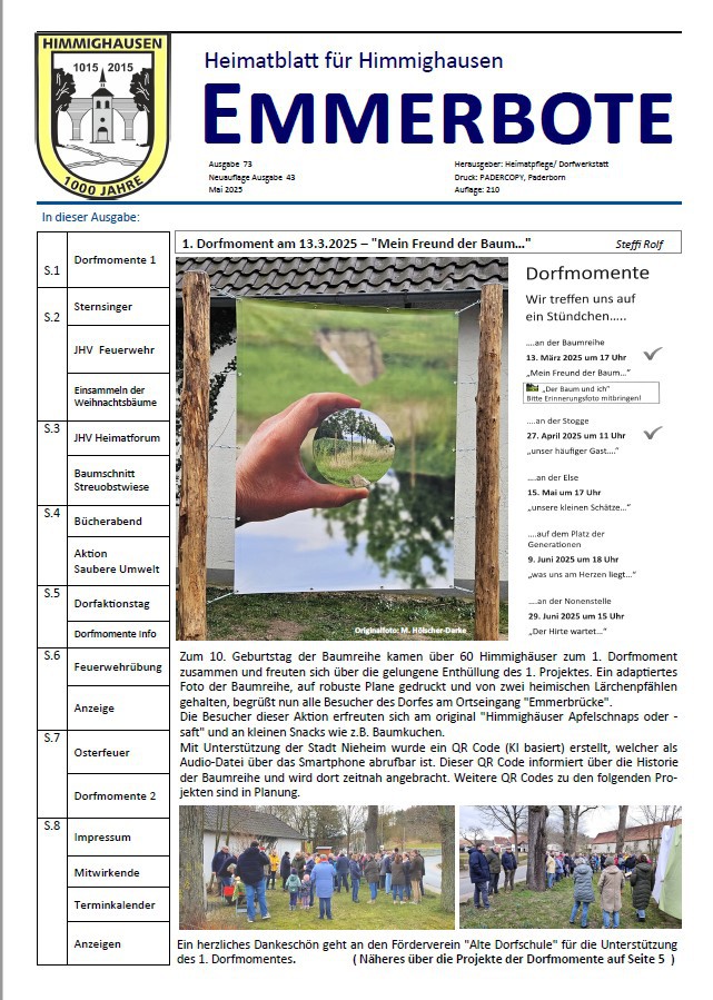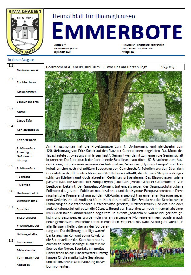 Auf der Basis seines Vortrages wird das Forum sicherlich wieder lebhaft und wahrscheinlich auch kontrovers diskutieren. Landrad Friedhelm Spieker und Nieheims Bürgermeister Rainer Vidal werden dabei sein. „So wird es eine spannende und kurzweilige Veranstaltung werden“... sagt Heinz Vathauer, Vorsitzender der Gesamtdeutschen Bildungsstätte und Moderator. „Denn stirbt das Land, sterben Seelen“. Er lädt alle Bürgerinnen und Bürger aus Himmighausen und näherer und weiterer Umgebung herzlich ein. Samstag, 13.10.2018, Beginn 15.30 Uhr, Ende 18.00 Uhr.